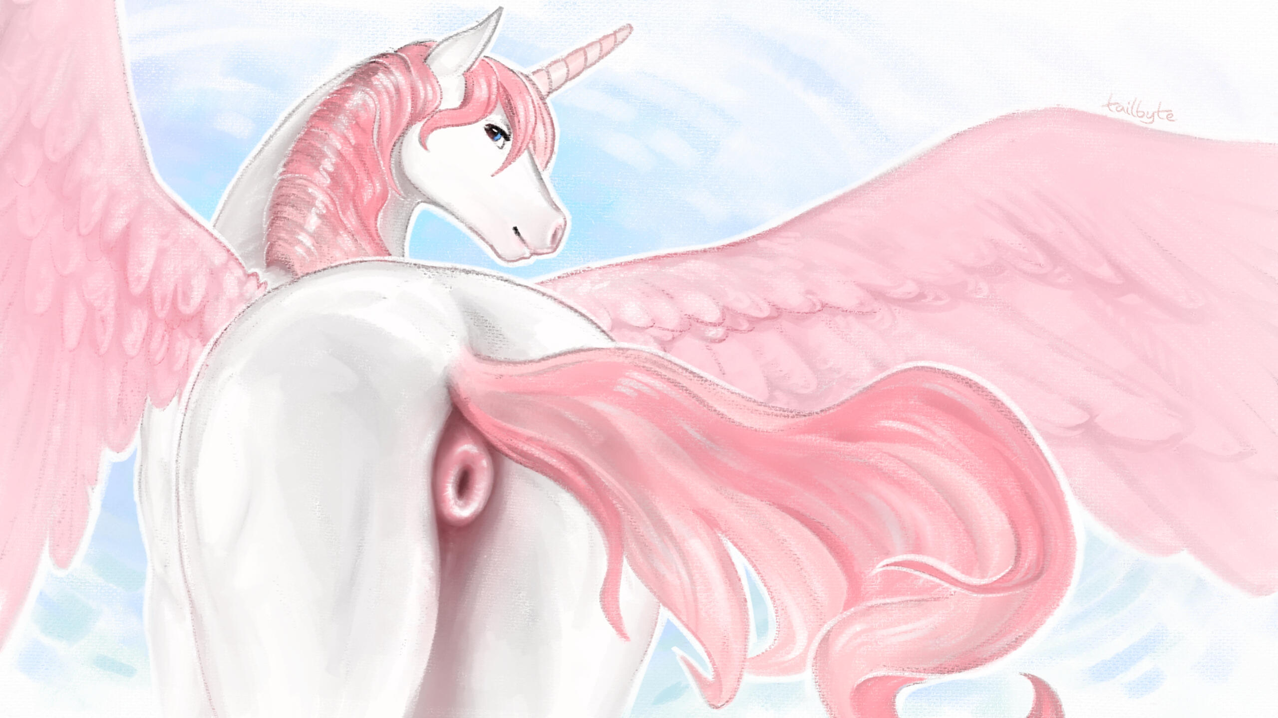 What tools do you use?Rebelle 8 | Krita | Paint.NET | Blender | GodotMy graphic tablet is XP-Pen Artist 22R Pro, I got it in April 2025. Before that, I was using Wacom CTL-671 since 2016 How long have you been doing art for?It started to become serious around 2012. I was doing diverse stuff by various nicknames up to 2022: photography, painterly landscapes, 3D modeling, animation experiments, design, worldbuilding – whatever I felt like doing. That was fun~ Then I started drawing furry porn! Tailbyte's official birthday is October 16, 2022 Do you ever do traditional art?All my art is digital unless stated otherwise. I'd love to do more physical art but it's not very practical as I don't have enough work space. All the stuff also costs a lot, and the lack of Ctrl+Z makes it a rather risky investment. Maybe someday I'll get around to it, who knows~ Do you get horny when drawing lewds?Only rarely. Thinking about composition, poses, perspective, color and other technicalities isn't usually erection-inducing. Being horny is also super distracting so I always try to work in a calm and focused mood for maximum productivity~ Any other hobbies and interests?Oh yeah, I'm excited about lots of stuff! Music, for one. I always listen to something while drawing, it helps me focus. Mostly death, black, symphonic and other kinds of metal, dark electro, experimental stuff, plus a few outliers. Here's a list of my favorite albums: google docsI'm curious about geology, botany, zoology, ecology, natural history and other natural sciences, as part of my love of nature in the broad sense. Hiking is my favorite way to unwind. I collect rocks, pinecones, shells and other pretty things~I used to do a lot of photography and photo editing a few years ago, until digital drawing started to take all my attention. I still take pics sometimes and post them in my Telegram channel 📷 tailbyte hobbies What's your education?I'm basically self-taught~ I've been always excited about art and kept doing it without any external motivation. Learning never ends, that's why I like to experiment with styles and mediums. It's not about perfection, it's about adventure! x3 You could work in a studio!Hypothetically I could, but my life circumstances and a certain health condition make me practically unemployable. I've never been employed. Instead, I've been self-employed for a while now and I'd like to keep developing my own business. I don't make much and finances are tight sometimes, but I appreciate the flexibility, meaningfulness and enjoyment~ Do you have any pets?Not really, if we don't count my bf. As much as I like silly animals, I'm not ready to take this responsibility. I'll only adopt if I'm sure I can keep them healthy and happy, currently I just don't have enough space and money to ensure that. I did adopt a peace lily though, his name is Igor~ Where are you from?I'm a free roaming animal – beyond nations, flags and borders. I'm a kitty from Earth and the planet is all mine, muahaha! My evil lair is located in Argentina >:3 Are you taken? Can I flirt?I've been in a relationship for 8+ years. We're neither closed nor open, we're just not looking for any other relationships. I don't do random hookups, but I'm fine with online flirting and sexting as long as it's fun for both of us~ What's your worldview?I've had experience with various ideologies, philosophies and religions, but chose not to follow any. I consciously avoid defining my worldview, because words are limiting and labels are lame. Best I can say, I'm a fluid freethinker: I appreciate flexibility, curiosity and autonomy, while my spirituality is abstract and inspired by nature, universe and time.